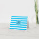 Custom Monogram Teal Blue and White Striped Note Card