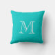 Add your own name initial to make a customised monogram throw pillow. This pillow makes a unique gift for her. Or get matching his and hers teal monogram pillows for a special anniversary present. This trendy fashion colour turquoise pillow looks great in a child's nursery or to add a touch of colour to your living room or bedroom. You can even change the background colour to your favourite colour using the customise tools and match your own decorating style. Tip: The monogram letter is on both sides - so remember to change both sides of the cushion to your own initial.