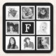 The perfect, personalized set of coasters for your next party. Customize it with eight of your favorite black and white or full color images and they will be framed in simple white square boxes in a grid pattern with a blank square in the center that you can personalize with your own monogram letter. Choose any color for the background using the advanced customize options. (shown black) All sample photos are my own, public domain or purchased and are for placeholder purposes only, replace with your own pictures.