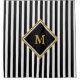 Personalize this large faux (not foil) monogram that is in the center inside of a diamond border. The background has vertical black and white stripes.