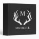 Custom Monogram with Black White Deer Antler 3 Ring Binder