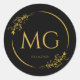 Custom Monogram with Date Black Metallic Gold Classic Round Sticker