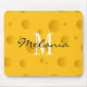 Custom monogram yellow swiss cheese mouse pad. Classy script typography and fun background texture. Cute mousepad design for men women and kids. Monogrammed with your name initial letter. Funny Birthday gift idea for cheese lover, mom, mother, girfriend, husband, wife, daughter, friend, co worker, boss, employee etc. Custom computer accessories with stylish print for him or her. Food theme.