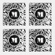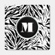 Your monogram initial and zebra stripes on a set of four acrylic coasters measuring 4" square x 1/4" thick, with a glossy smooth surface and round beveled edges. Great gift idea!