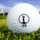 Eye-catching golf ball design for him features a male golfer silhouette in black outlined by a circular frame also in black. Bold style initials complete the design template. Colors of this design may be changed. Other colors available.