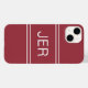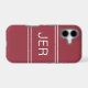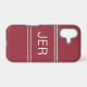 Stylish custom design features up to three bold letter initials in a shadowed white font on a contemporary crimson red background. Background is divided into thirds by two matching stripes above and below the initials. Simple to use modern template allows for easy personalization. E-mail beachpausedesigns@gmail.com or use the message link in this listing with questions or custom color requests.