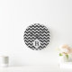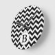 Custom Monogrammed Large Black Chevron Design Round Clock