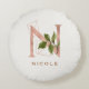 Custom Monogrammed Rose Gold Floral Initial N Round Pillow