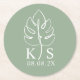 Custom Monstera Monogram Save the Date Logo Round Paper Coaster