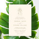 Plain white envelopes are included with paper invitations and will come to fit the invitation size you select. If you don’t need the envelopes, you may choose to not receive them by selecting the dropdown below "Envelopes" and choosing "None." If you’d like to have a design on your envelopes, you can browse all of these available envelopes to find the design that complements your Custom Monstera Monogram Wedding Logo Invitation.