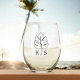 Custom Monstera Monogram Wedding Logo Stemless Wine Glass