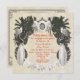 A Moorish theme with palms, sultans and Arabic elements in black on an ivory damask surround the text for an engagement party, bachelor party, Jack & Jill shower or theme party with peacock feather emblem and frame on back.