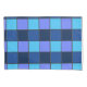 Refresh your space with this cool and contemporary "Blue Mosaic" pattern. The artwork features a grid of squares in a monochromatic palette of navy, royal blue, and cyan, creating a look reminiscent of classic swimming pool tiles, retro 8-bit video game graphics, or a modern patchwork quilt.