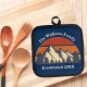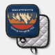 This awesome sunset over rocky mountains and forest trees in nature makes a great image for a custom pot holder for a family log cabin in the woods. Just add your own personalized monogram and established date on the blue house gift.