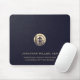 Elevate your meetings with our Custom Mousepad with Personalized Name Title and Logo. This sleek design features a brushed gold logo at the center, with space to personalize each mousepad with the individual's name, company name, and title. The rich navy blue textured print background adds a touch of sophistication to your boardroom setup. Make each meeting member feel valued with a personalized mousepad that reflects their unique role within your organization. Perfect for corporate events, conferences, and board meetings.
