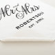Custom Mr and Mrs newly weds Sherpa fleece blanket gift. Elegant typography design gift for just married couple. Available in small, medium and large size. Add your own family surname and date of marriage. Personalize with custom colors.