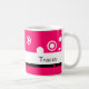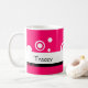 Customize this personalized mug by entering name under the "Personalize it" tab. Change background color by clicking the "Customize" button, then click "Edit">>"Background" and select a color.