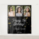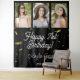 Custom Photo Booth or Party Wall Backdrop as birthday party wall decor! Space for 3 photos of the birthday girl, and easily customize the modern typography design with your name, message, and birthday date. This layout features printed gold confetti sparkles over a black background.
