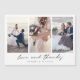 This simply chic three photo collage wedding thank you magnet template features a crisp modern look. We've given this minimalist design a warm touch with 'love and thanks' below your favorite photos in a relaxed, all lower case script that feels intimate and familiar. This element of the design can't be altered. When you edit the sample first names and replace them with your own, you can also change the font and color of the text if you prefer another look. We've chosen gray as the default color for your names, to contrast a bit with the black 'love and thanks' message above. Use the intuitive design tools, your favorite photos and your inspiration and make it uniquely yours! And please browse our wedding thank you collection for more simply elegant modern wedding thank you card motifs, including this design in flat card, postcard and folded card formats!