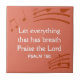 Elegant terra cotta Praise The Lord Christian tile, designed with musical notes. There is customizable text that says LET EVERYTHING THAT HAS BREATH PRAISE THE LORD, which is based on Psalm 150 and which you can personalize to suit your requirements. Available in other colors and with matching items. Plain version also available.