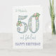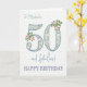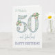 A pretty 50th birthday card for you to customize with the name of the recipient. The large number 50 is filled with a Dog Rose pattern, outlined in soft gray/green and there are two sprays of pink Dog Roses decorating the numbers. The background is a very light green polka dot pattern on white and the front cover greeting is, '50 and fabulous! HAPPY BIRTHDAY', with plenty of room at the top for you to add the name of the recipient. You can also easily customize the inside message.
