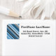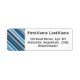 This return address label design features stripes colored various shades of blue and grey. It also features a personalized person, family or business name, above a personalized mailing address.