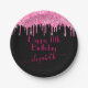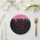 Custom Name + Age Hot Pink Dripping Glitter Black Paper Plates