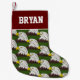 Custom name American bald eagle head pattern Small Christmas Stocking. Bird print with bold typography and customizable green background color. Fun x-mas decorations for winter Holidays. Add your own name, monogram or seasons greeting. Create a sock sack for son, daughter, boy, girl, children, sport coach, friends, pet etc. Small and large sizes. Choose from different materials including soft fleece.