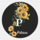 Custom Name and Initial Modern Sunflowers Yellow Classic Round Sticker