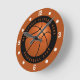 Custom Name Basketball Black and Orange Round Clock