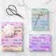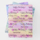 Customizable with recipient's name - Fun, colorful and girly word art happy birthday wrapping paper with a 3 different gradient color backgrounds - purples, pinks and greens.