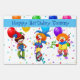 Custom name birthday yard sign is shown with a cute carnival clowns print.