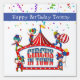 Custom name birthday yard sign is shown with a cute carnival clowns print.