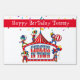 Custom name birthday yard sign is shown with a cute carnival clowns print.