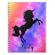 Custom Name Black Unicorn Rainbow Sky Notebook