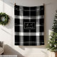 Custom Name Black White Buffalo Plaid Men's Gift Fleece Blanket