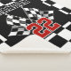 Cool auto racing flags design on a black and white checkered background. With room to customize or personalize with name, monogram or initials of your choice. This whimsical stylish hipster design is made for the race car and motorsport sport lover, go-kart racing fan, dirtbike champ, and anybody else who loves car, motor and auto sports.