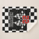 Custom Name Black White Checkered Flags Pattern Sherpa Blanket