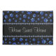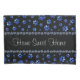Custom name, blue glitter dog paws on black background.