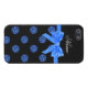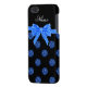 Black blue glitter polka dots (not real glitter) pattern background with a blue glitter bow (faux glitter, not real) ribbon personalized with your custom name gifts or monogram gifts or your initials featuring an elegant and traditional fancy lettering. Polka dot gift ideas.