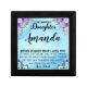 Show your daughter how much she means to you with this custom name design. Featuring her name in a beautiful blue background with purple flowers and a warm message, this design will become a cherished keepsake for years to come. Perfect for birthdays, graduations, or just because, give her a gift that she'll wear with pride and love. Order now and create a memory that will last a lifetime. Best order with a matching jewelry or accessory from this collection.