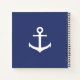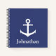This blue notebook has a white ship's anchor. Under the anchor you can personalize your notebook with your name or other text.