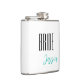 Flask for the bride is shown in white with black text and has a sample name.