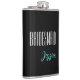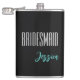 Flask for the bridesmaid is shown in black with teal and white text and has a sample name.
