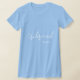 Women's t-shirt is shown in a crew neck and short sleeves style in baby blue with white color text: Bridesmaid and a custom sample name.