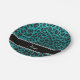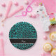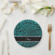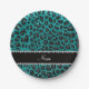 Custom name bright aqua glitter leopard print paper plates