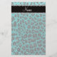 Modern,chic and trendy personalized custom name bright aqua glitter leopard spots pattern (animal print) with a beautiful black diamonds stripe (not real diamonds) with hearts and dots personalized with your name gifts or monogram gifts or your initials. Pretty girly leopard print gift ideas.