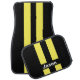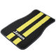 Custom name car mat set of four shown in a solid color of black with yellow racing stripes.
