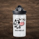 This cute water bottle features an adorable black-and-white cow illustration and can be personalized with your name. Perfect for kids or cow lovers, this fun design makes hydration more enjoyable. Whether for school, sports, or daily activities, this personalized water bottle is both practical and charming.