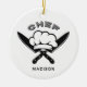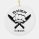 Lightweight, smooth, pure white ornament with nice sheen. Perfect size to be seen from across the room ... and to attract closer inspection! Price was great for ordering enough for the whole family! Clear, bold black design just as requested. Matches the order exactly. Just so nice!